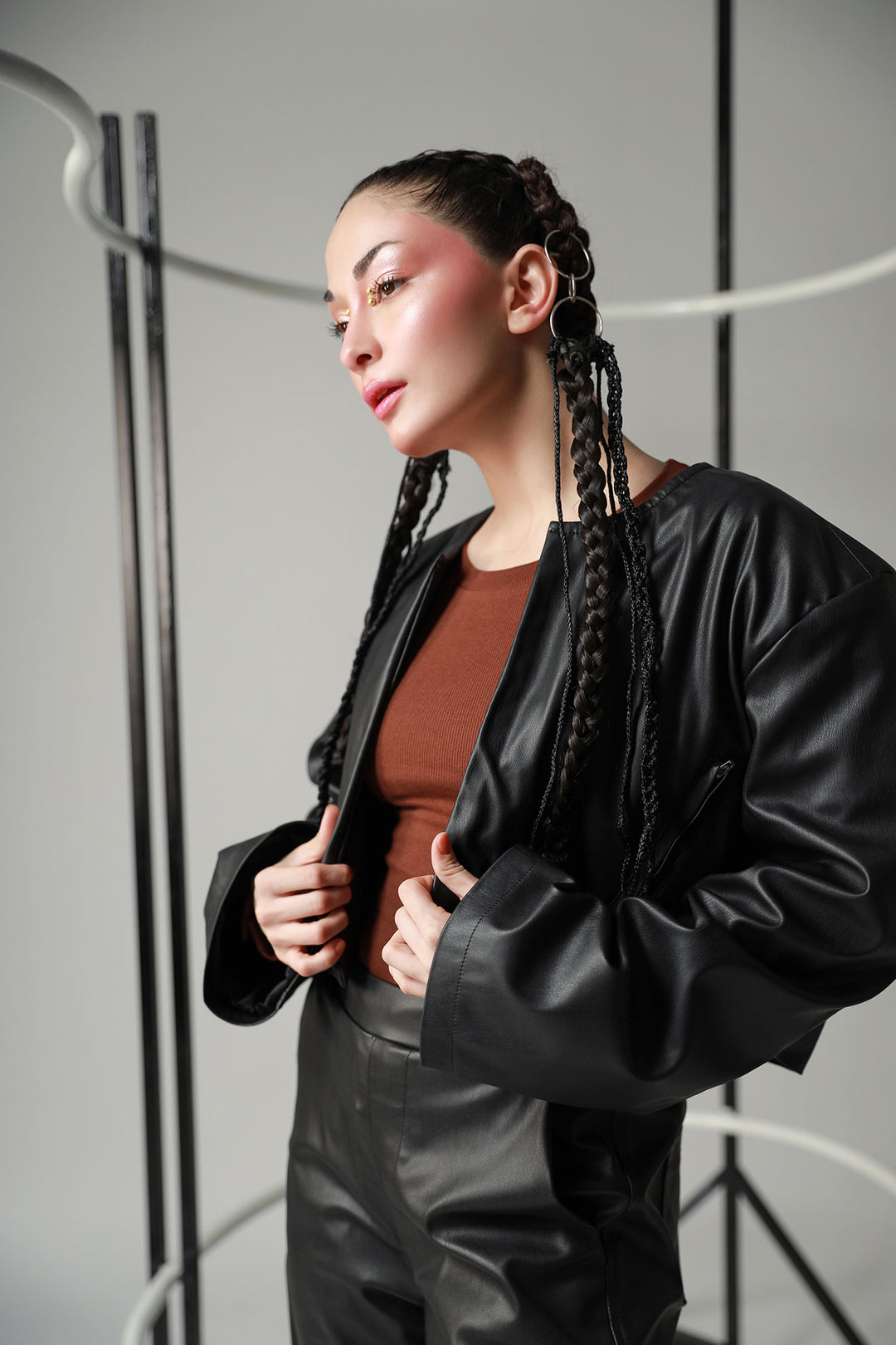 Black Cropped leather jacket
