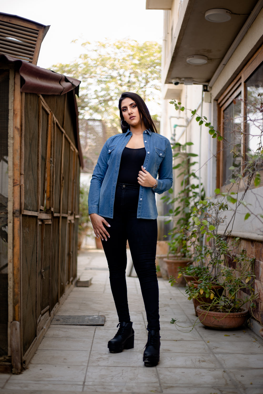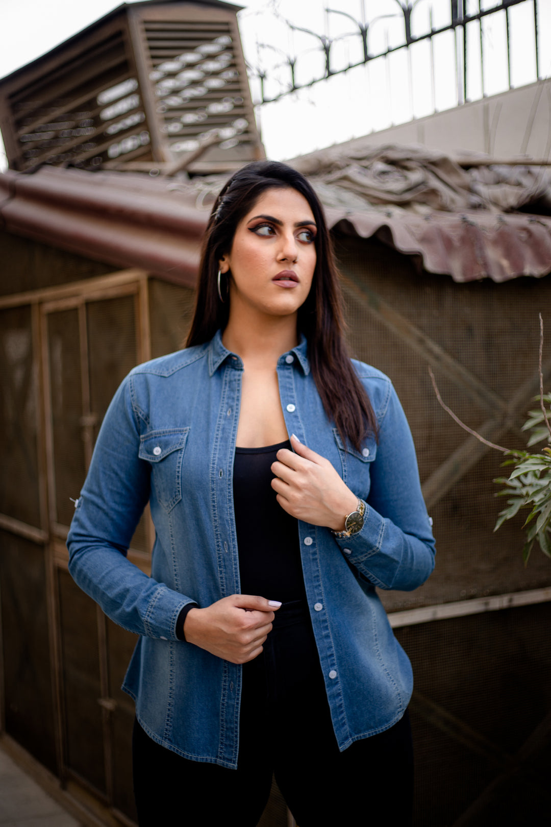 Button Down Crop Denim Shirt