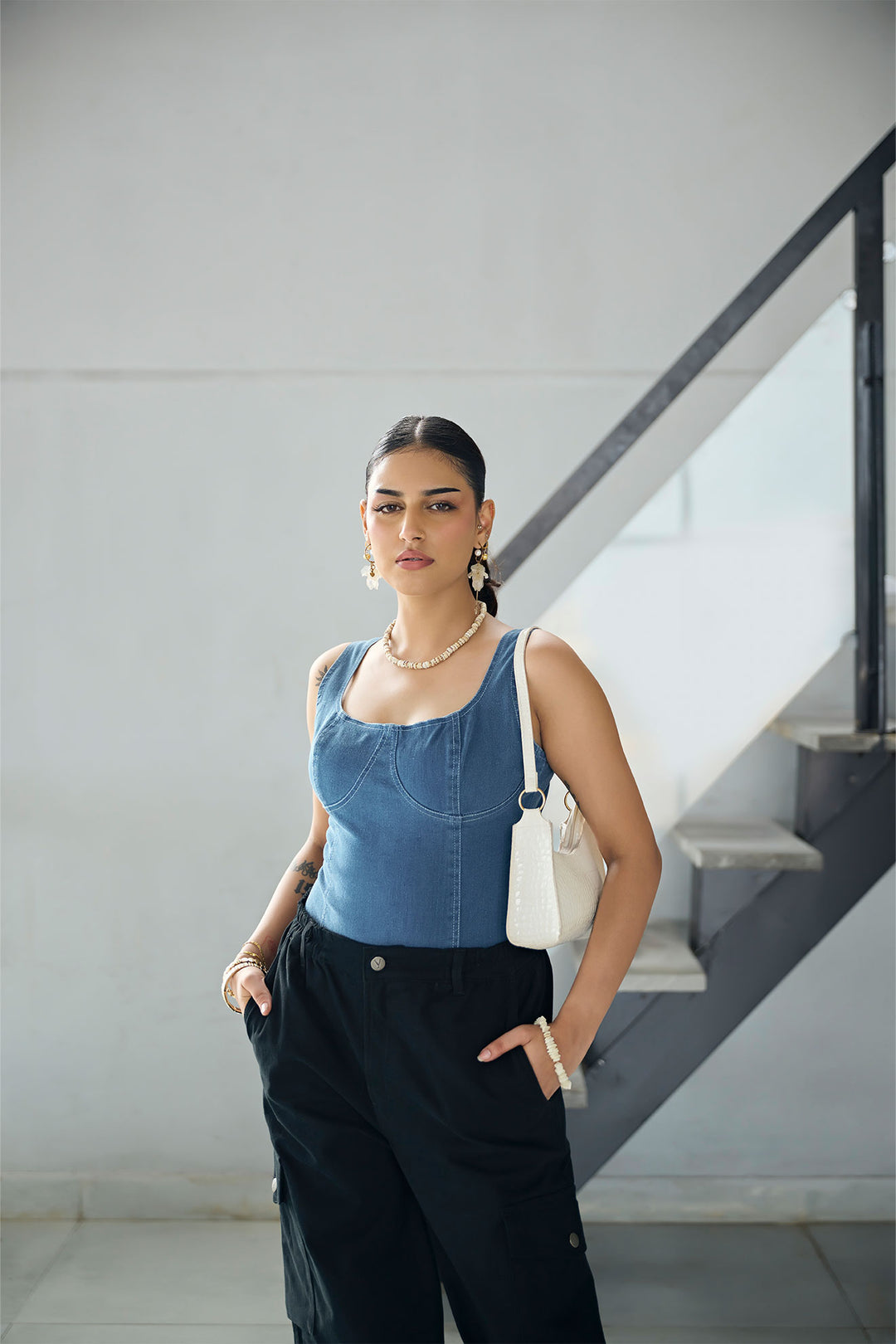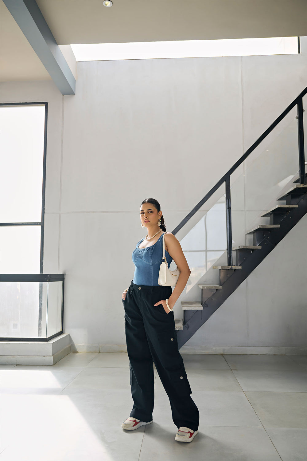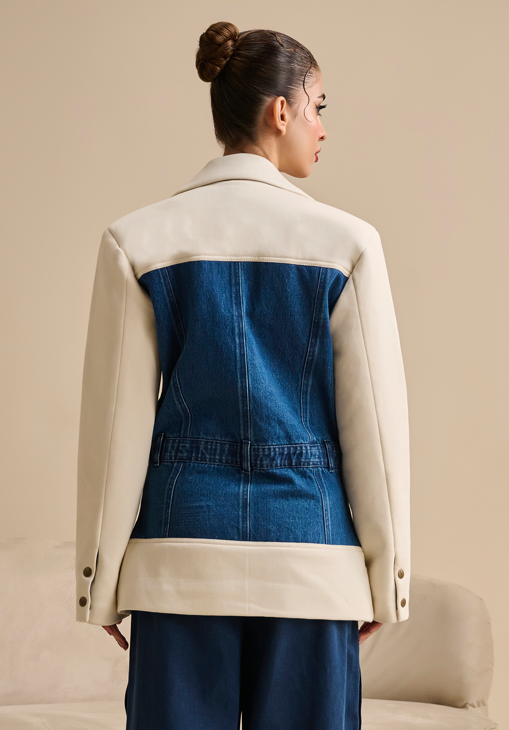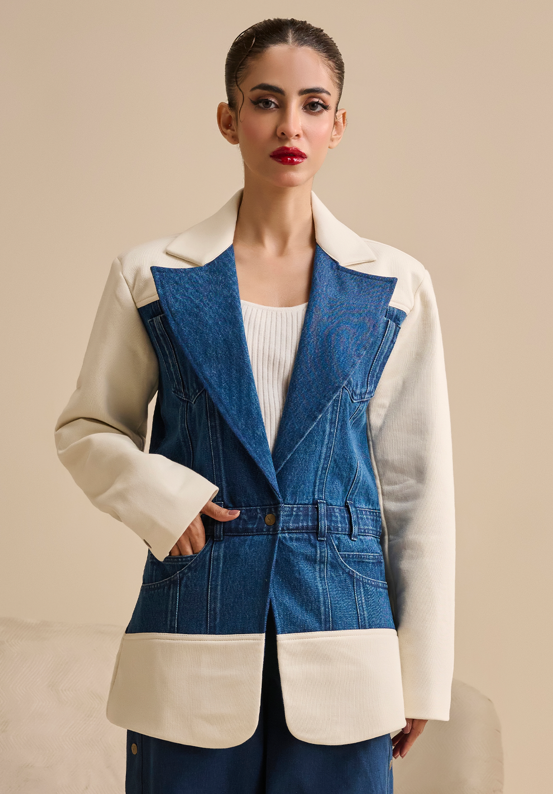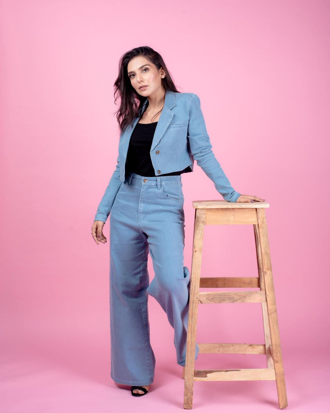 Creme - 2 piece Co Ord set (Turtle neck crop top with pencil skirt)