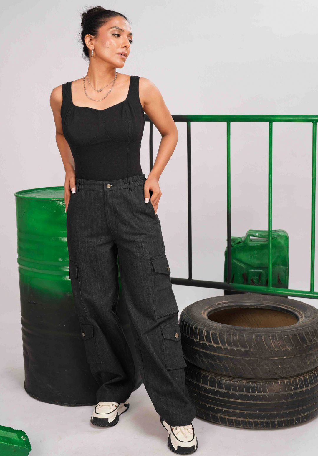 Black Denim Cargo Pants